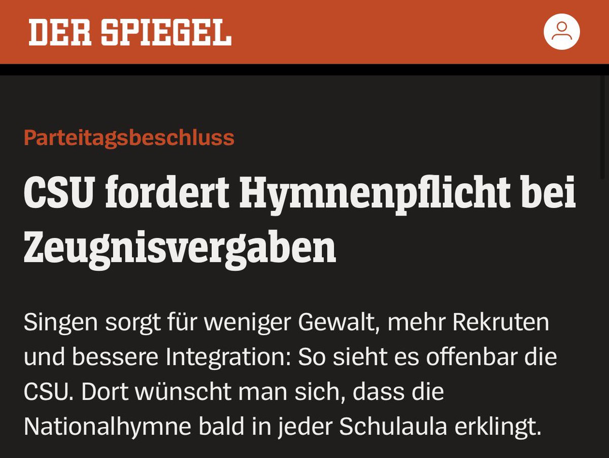 Das sind die ganz großen Probleme im Land. Nicht die zu hohen Mieten. Nicht die steigenden Preise. Die unpünktliche Bahn oder immer mehr perverser Reichtum für Wenige undArmut für Viele. Nein, liebe Freunde das Problem ist, ob Schüler die Deutsche Nationalhymne bei der