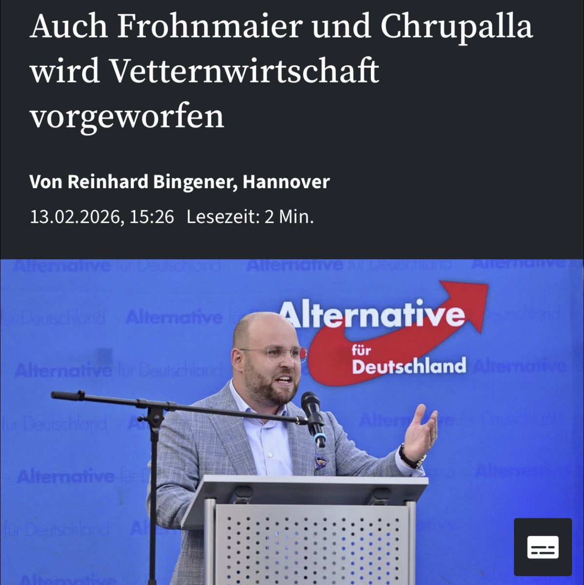 Was für eine Vetternwirtschaft. Die AfD greift den hart arbeitenden Menschen tief in die Tasche, um sich selbst und ihre Sippe zu bedienen. Das ist Umverteilung in die eigene Tasche. Pfui. Die Politik dieser Partei ist widerwärtig.