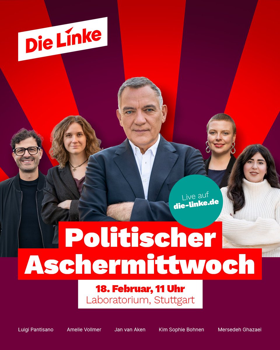 Sei dabei, wenn wir den abgehobenen Politikern in Berlin & im Ländle mal richtig einen einschenken! Warum die Politik der CDU auch mit Humor kaum mehr zu ertragen ist - live und in Farbe beim politischen Aschermittwoch der Linken! Am Mittwoch ab 11 Uhr auf https://t.co/BfvoYp17pb